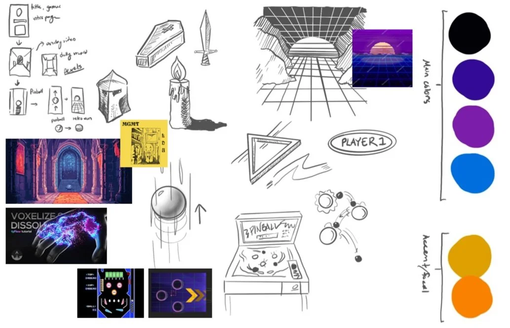 For me, “Little Dark Age” creates very strong 80’s synth-pop and new wave sounds, reminiscent of something out of a futuristic horror film. Bringing in retro imagery from 2-bit video games, pinball machines, and the classic wireframe grid, I attempted to pair these tech visuals with something medieval. Hence the song title, I kept the colors dark and my graphics Gothic and macabre. I hand-painted in Illustrator all of the pixel assets in this animation.
